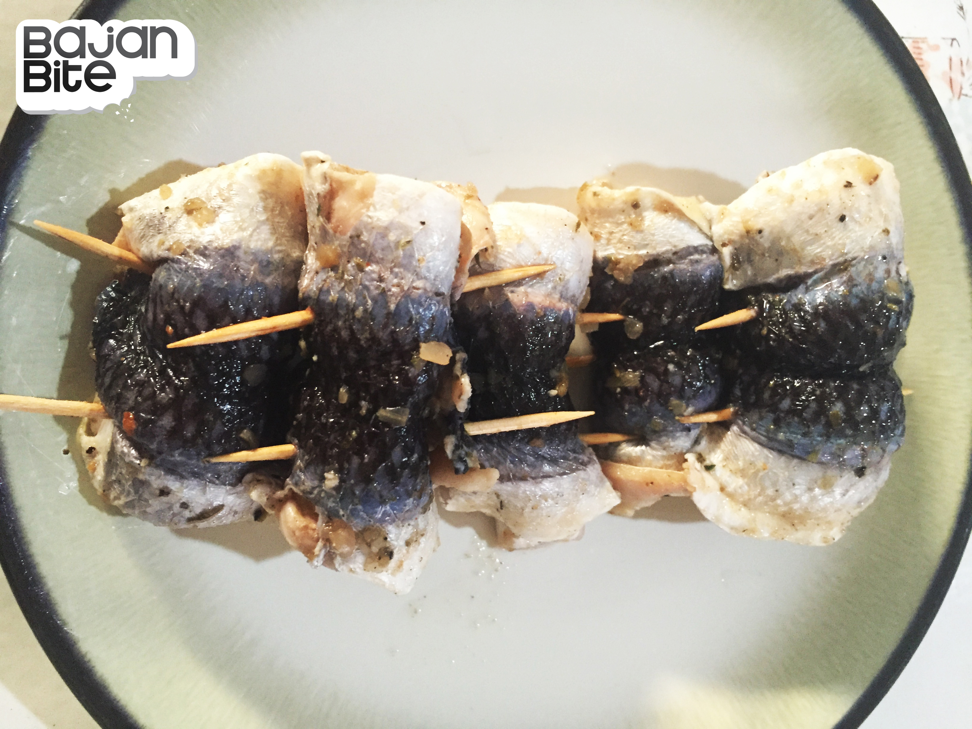 - Roll the fish and keep secure to stew by taking the smaller end of the fish and rolling inwards until you reach the other end. Secure using toothpicks as pictured below. This keeps the fish from unraveling when boiling.