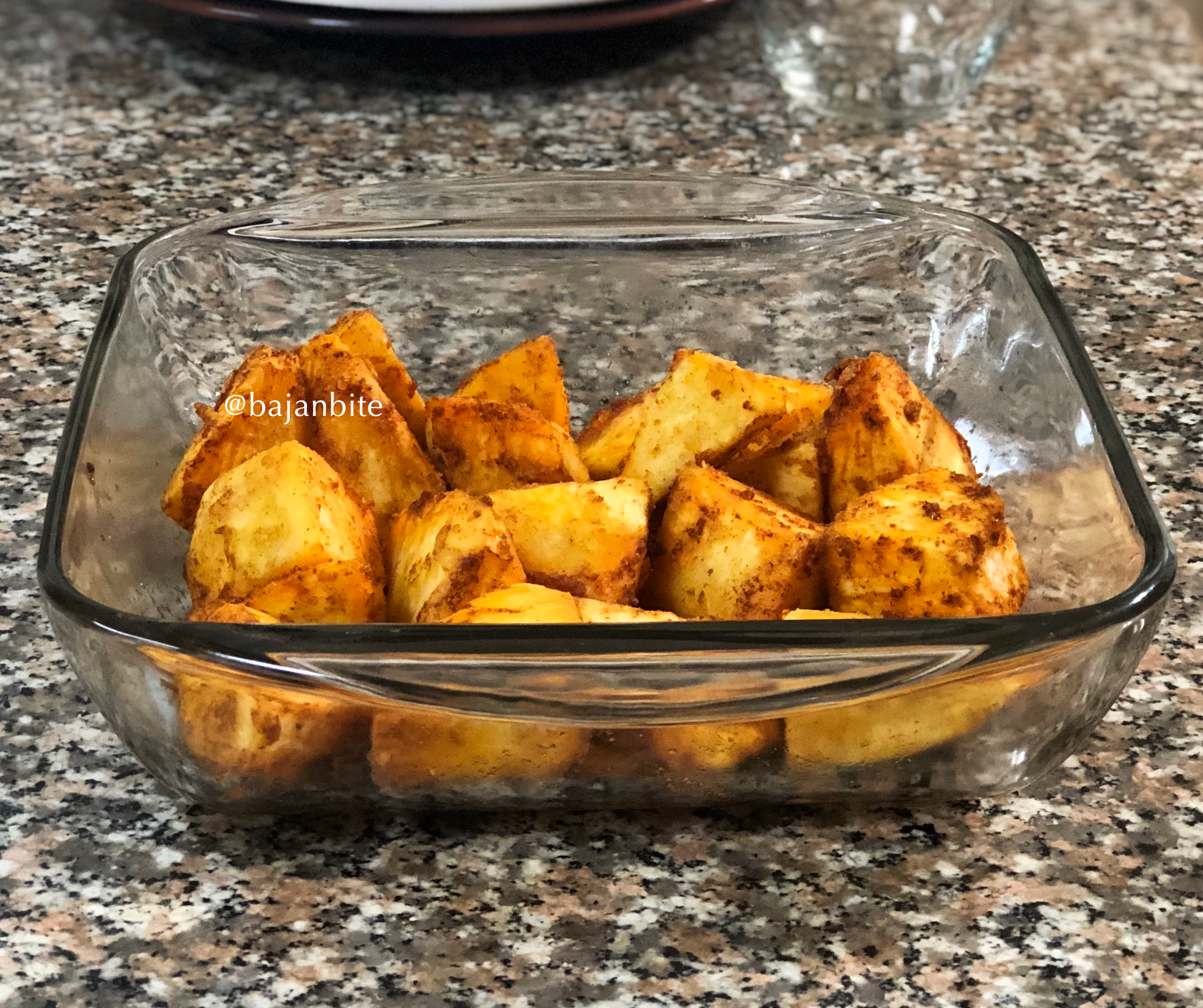- In a bowl mix the breadfruit, cumin, paprika, garlic powder, onion powder, salt and oil.